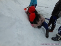 スコップなどでたくさん雪を集め,協力して作っていました。
