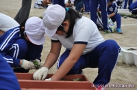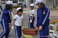10月27日(月)に全校生で花を植えました。学校の花壇とプランターに植えました。植えた花は、チューリップ、ビオラ、パンジー、ノースポール、キンギョソウです。今回植えましたビオラ、パンジー、ノースポーツ、キンギョソウは公益財団法人花と緑の農芸財団で主催する「花の輪運動」に応募し、贈呈いただいたものです。全校生に紹介し、感謝の気持ちを込めて植えさせていただきました。春にきれいな花を咲かせられるように育てていきたいです。