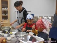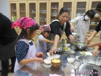 保護者の皆様にご協力いただき,教わりながら「茶巾しぼり」と「蒸しパン」を作りました。