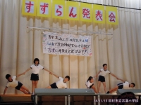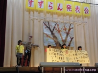 15日(土)にすずらん発表会を行い、全校生67名がそれぞれの学習の成果を発表しました。1年生と各学年の代表児童によるオープニングから、3年生のダンス、組み体操、4年生の劇「どんぐりと山猫」、1年生の古道小数え歌の暗唱、2年生の劇「お手紙のその後」、5年生「古道オリンピック2014」と、音読や劇、表現運動などそれぞれに趣向を凝らした発表をすることができました。6年生は、都路に伝わる民話を元にした創作劇を行いました。地域への感謝、都路への思いを台詞に盛り込みながら内容豊かに演じました。