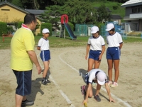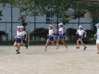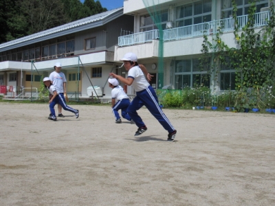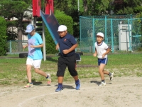 今朝も気持ちの良い青空の下、5,6年生は陸上競技の練習です。