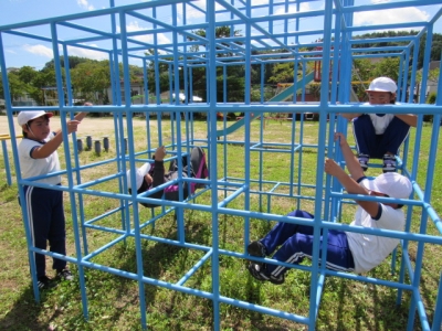 次に固定遊具を使った運動の工夫について学び、やってみました。