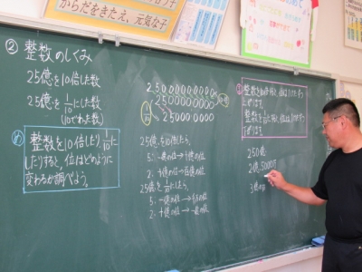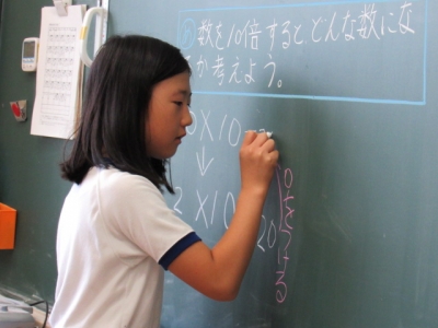 5人はしっかり話を聞いて、よく考え問題を解いています。10倍すると、10分の1にすると・・・。