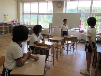 そして、聞いている友達は感想を述べたり、質問したりします。「話す力」や「聴く力」が育ってますね。