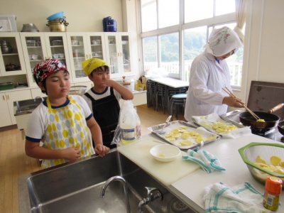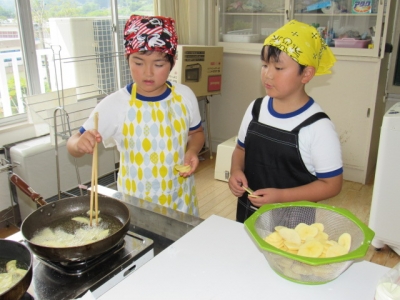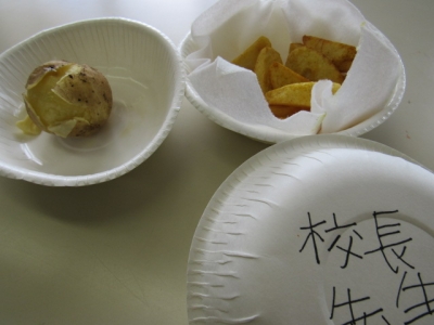 自分たちで育て、収穫したジャガイモをポテトチップにして、みんなにふるまいました。