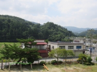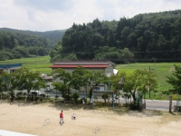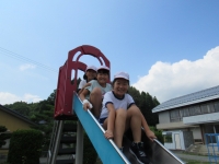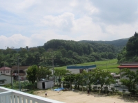気持ちの良い天気。子どもたちが見ている岩井沢の風景です。