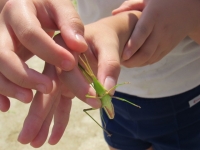 手拍子をうち、拍のながれにのってリズムを感じています。