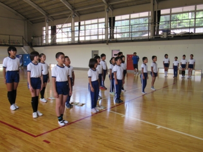 まずは、全校生で合唱「気球にのってどこまでも」。きれいは歌声がひびきます。