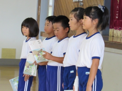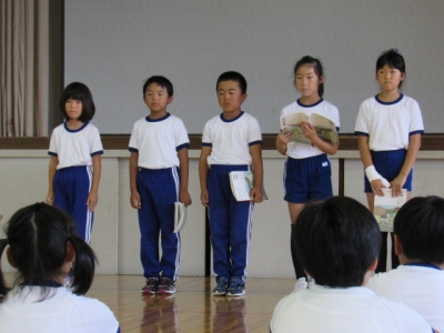 その後に、4年生が国語の授業で学習した詩をひとりずつ朗読しました。上手でした。