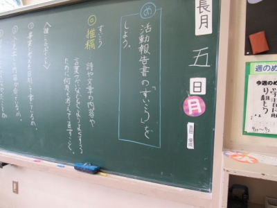 国語の授業では自分達の委員会の活動報告書を書きました。そして本日は推敲です。