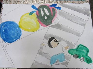 朝の会の前に、こどもたちは合唱します。今月の歌は「気球にのってどこまでも」です。