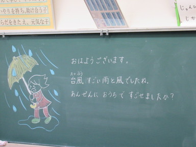 昨日は台風の影響でお休みでした。今日は放送委員会による朝の放送で、さわやかな朝がスタートしました。