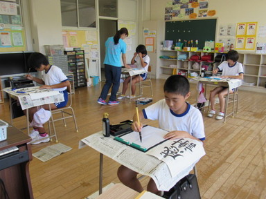 5年生も2校時は書写でした。姿勢をただし、筆順に気をつけ、字形を整えて書いています。