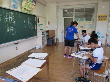 2校時は書写。部分の組み立て方に気をつけながら、字形を整えて一生懸命書いています。