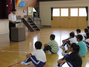 全員そろって行いました。校長からは、オリンピックの出来事から、仲間の大切さと、夢を持つことのすばらしさを話しました。