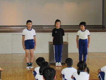 その後、2,4,6年の代表児童が、「夏休みの思い出・これからがんばりたいこと」を発表しました。みんな聞いているお友達に向かってしっかり伝えることことができました。