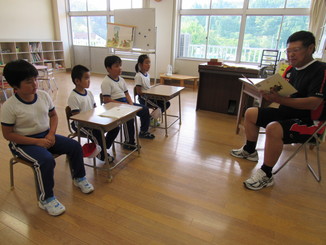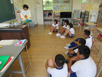 金曜日の朝の読み聞かせは、担任の先生ばかりでなく、いろいろな先生に本を読んでもらえるので、子どもらも楽しみにしています。