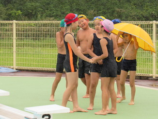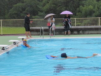 2016年8月29日 14時20分あいにくの天候でしたが、3校時に行いました。子どもたちは今までの練習の成果を発揮して、一生懸命に泳ぎました。また、互いに応援する態度もたいへん立派でした。保護者の方々も応援に駆けつけていただき、ありがとうございました。