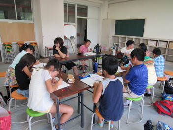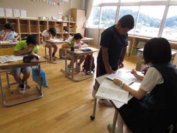 その間、1~4年生はみんなでお勉強です。宿題はおわったかな。