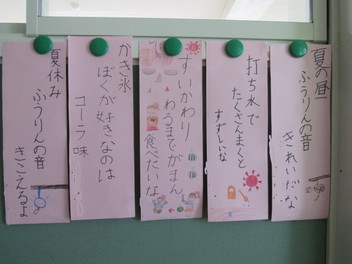 国語の学習で俳句を作りました。夏の様子がよく表れています。