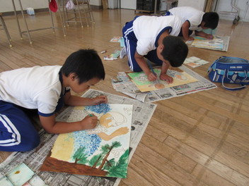 5年生は落語から、心を動かされたところを表現しています。皆、人物の様子を生き生きと描いています。