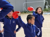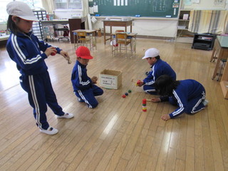 低学年の児童は、仲良くけん玉やだるま落としであそびました。