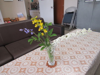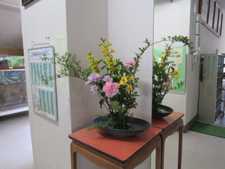 用務員さんが、ご自宅の庭の花をいけてくださいました。校内に花があると心が潤います。
