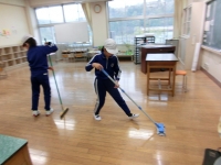 6年生や上学年のお兄さん・お姉さんが1年生におそうじに仕方を優しく教えてくれていました。