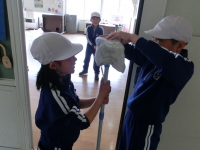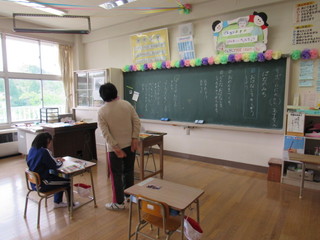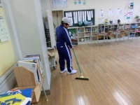 今日は教室掃除にまざって、おそうじの仕方を教えてもらっています。