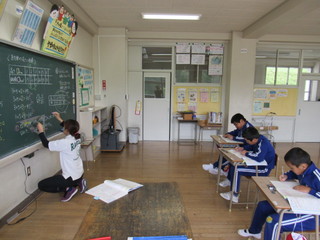 直方体の高さが高くなると体積はどう変化するかを表にまとめ、「比例」を学習しました。みな真剣です。