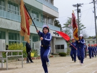 2年生はプラカードを持って、入場行進の練習をしていました。