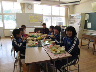 一緒に給食を食べている5年生もどんな問題が出たのか興味津々です。