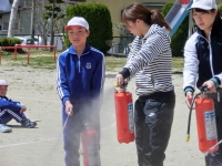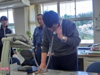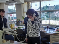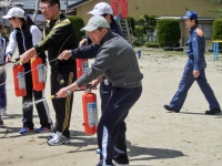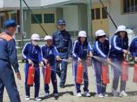先生方も消火訓練をしました。そして、職員室では通報訓練も行われました。