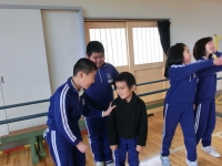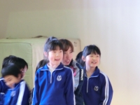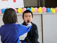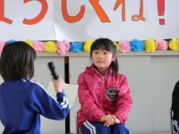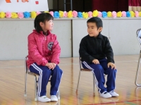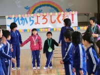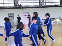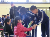 1年生へ向けてクラス紹介をし、1年生と握手をしました。その後は、手つなぎ鬼で体育館を走り回りました。