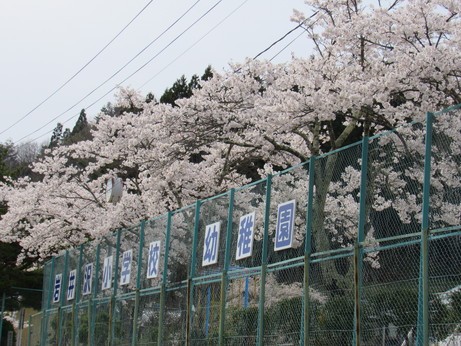 校門の様子です。長年子どもらを見守ってきました。幼稚園は現在休園中です。