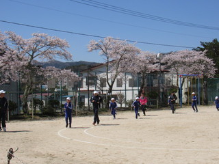 満開の桜を楽しみながら、全校生でランランタイム。気持ちよく走りました。