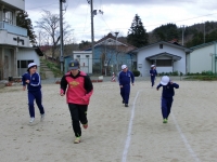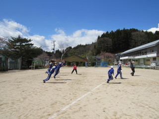 少し寒いですが、素晴らしい青空のもと、5,6年生の合同体育です。運動身体つくりプログラムにより、体力と身体能力を向上させています。みんな積極的に運動しています。