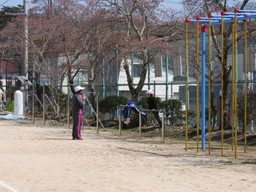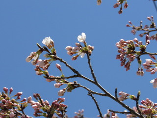 今日のあたたかさで、校庭の桜がきのうよりも咲いています。