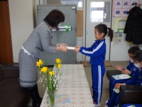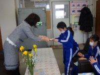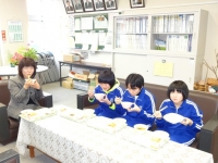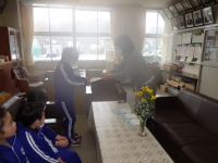 今日の給食は、「ひなまつり給食」。そんな給食にふさわしい3名の女子が、本日の校長室組でした。本当は、もっと賑やかなはずのようですが、ちょっとかしこまっていたようです。