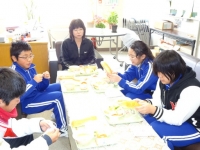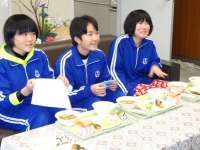 今日の給食には、3人の6年生がやってきました。最後のグループです。