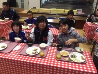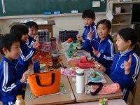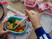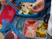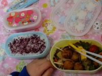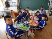 1年~3年生は学校で勉強をしています。今日はお弁当の日でした。