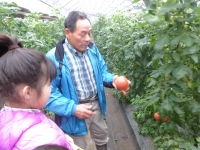 雨が降り,寒い中にもかかわらず,トマトやキュウリ,お米の成長や,取り入れ後の行き先などについても