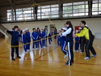 また、お昼休みには、縄跳びのダブルダッチを教えてもらって全校生で楽しみました。