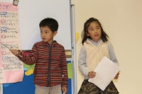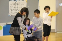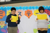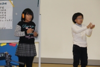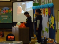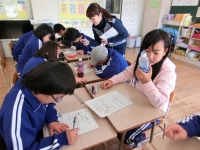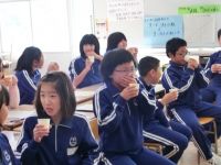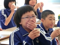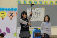 2015年11月12日 15時16分今日は給食センターの栄養教諭の先生においでいただいて、「おやつの取り方」について教えていただきました。