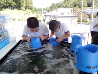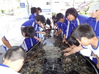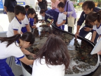いわき市にある“アクアマリンふくしま”から、移動水族館が岩井沢に来てくださいました。“アクアマリンふくしま”にいる様々な生き物たちを、子ども達はみたり触ったりして観察しました。