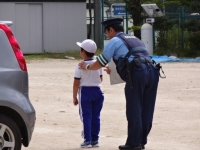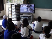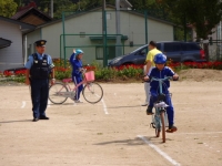 下学年は「車や見通しが悪いところでどのように歩く・・・」上学年は「ビデオで確認し、学習したことを活かして、自転車を乗るときに注意すること・・・」を実際に校庭で行い指導していただきました。