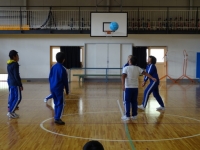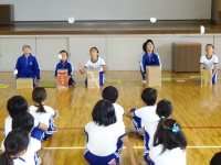 スポーツクラブは、様々なスポーツに取り組んできて、それぞれが好きなものを紹介しました。野球・バスケットボール・校内かくれんぼ・バドミントン・ソフトバレーボール・・・それぞれ楽しかったようです。「今日はソフトバレーの様子をお見せします。」