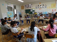 「たをやめオルケスタ」というビッグバンドの演奏でした。ジャズの演奏にはあまり親しみがなかった子ども達でしたが、ドラムの演奏に興味を惹かれたようです。最後に、自分達の校歌がジャズ風にアレンジされて演奏されると、大きな声で歌っていました。また、両校を代表して、6年生の莉茉さんが御礼のあいさつを立派に述べてくれました。関係者の皆様、楽しいひとときをありがとうございました。