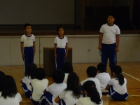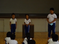 集会では、3人の代表が、夏休み楽しかったことやこれから頑張りたいめあてを発表してくれました。