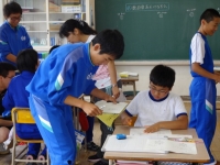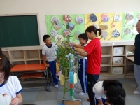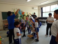 縦割り班ごとにわかれてのささ飾り